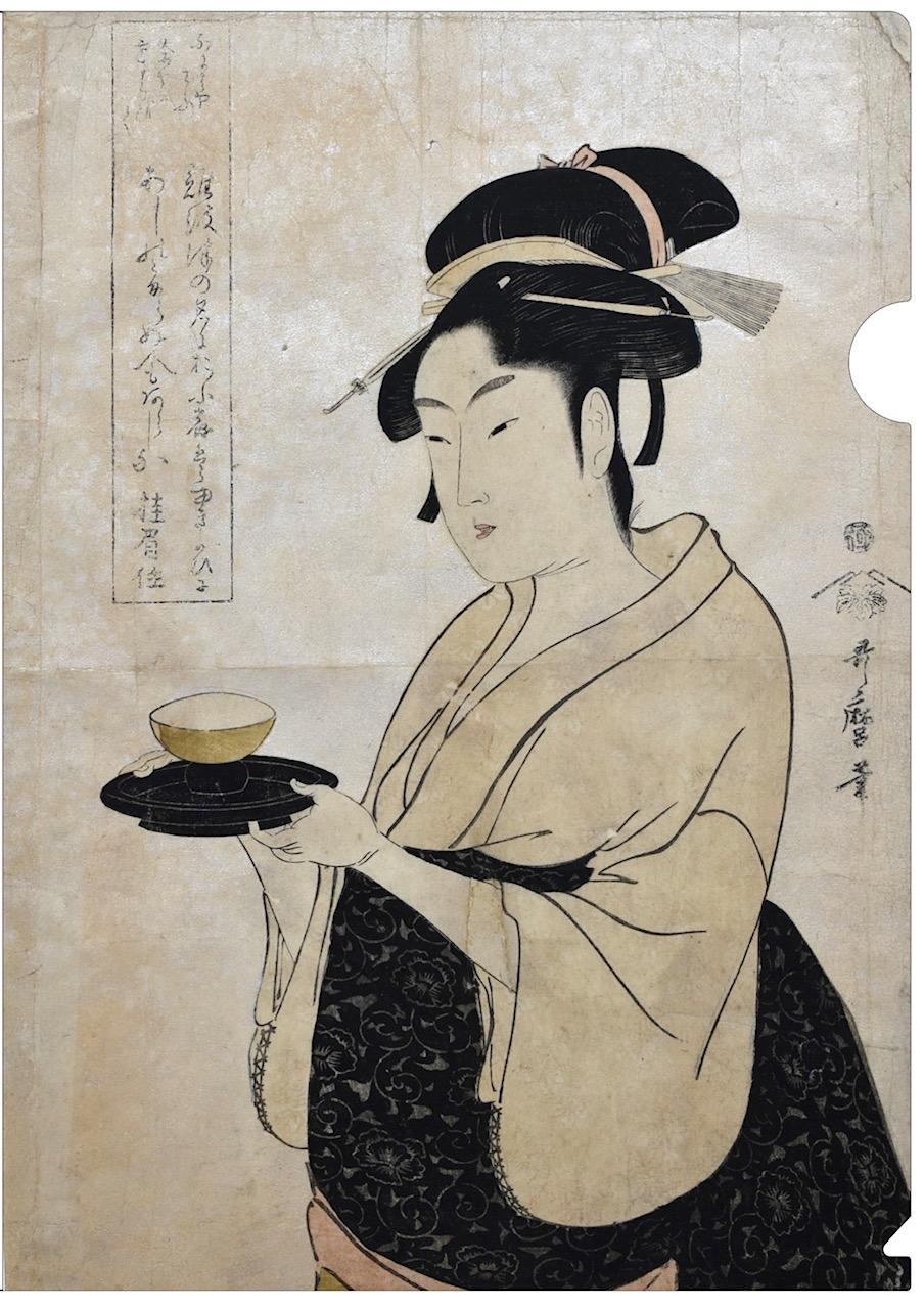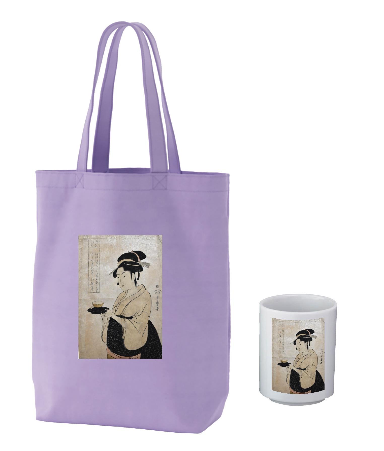 藤枝市の藤色のトートバッグに歌麿の浮世絵をプリントしております