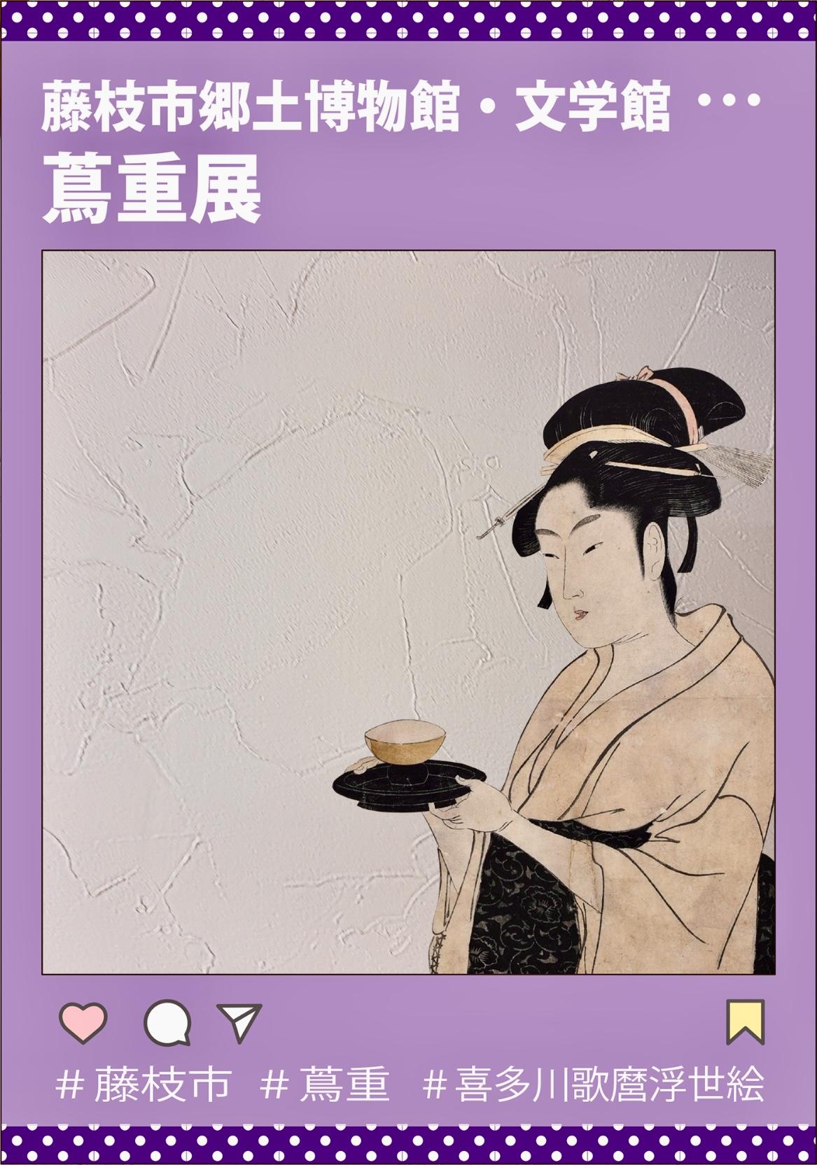 藤枝市郷土博物館様で開催されていました蔦重展にて来館者様が歌麿の絵と一緒に写真が撮れるフォトフレームを設置頂きました。